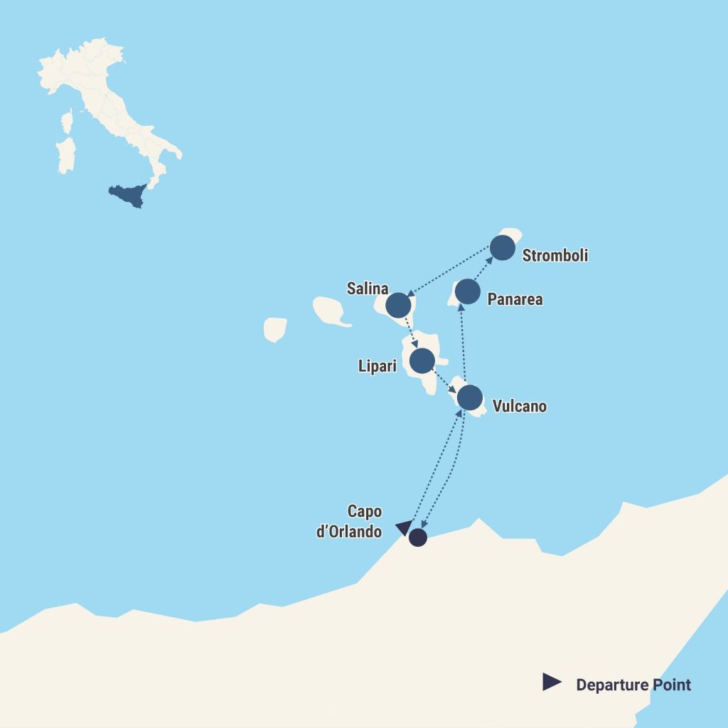Dinner on board and overnight in en-suite cabin in Capo d’Orlando.